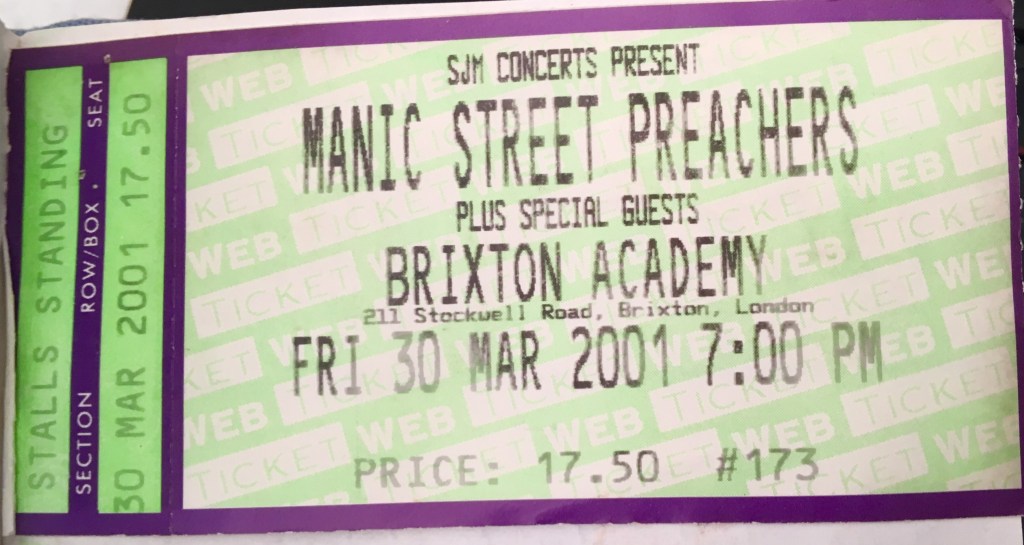 All the gigs of my life: Gig 54 – Manic Street Preachers, Friday, March 30, 2001, Brixton Academy