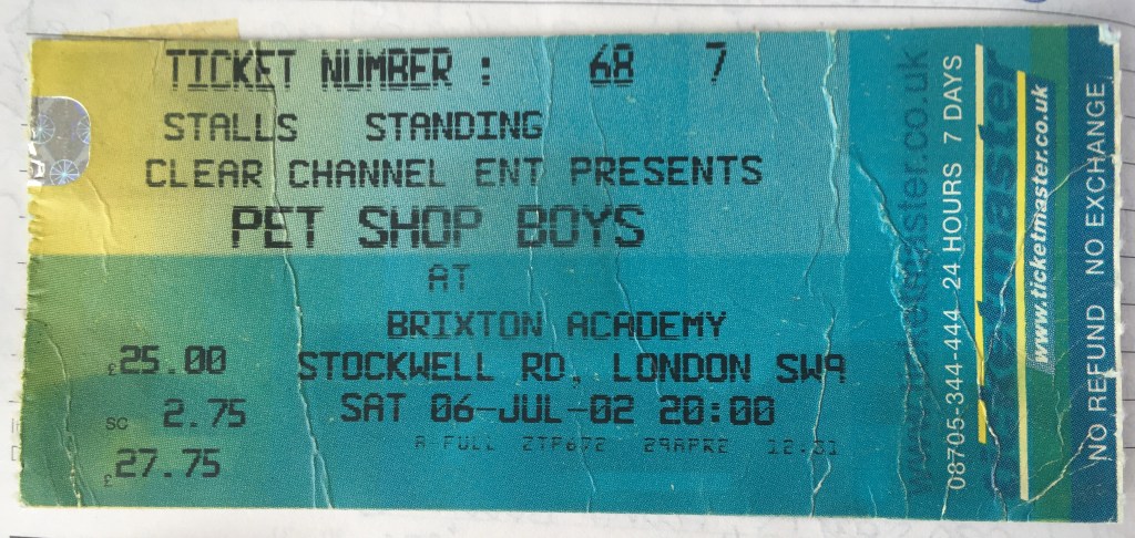 But something unusual was happening this time: I was not going to the gig alone. For when I’d mentioned a few weeks previously to a work friend that I was going to see the Pet Shop Boys, she immediately decided that she and one of her mates would tag along. Readers of this blog will be well aware that I vastly preferred to attend gigs on my own in my 20s – as I’d discovered at my very first Pet Shop Boys gig in 1994 – and so I felt a little uncomfortable about having to share. From my diary:
