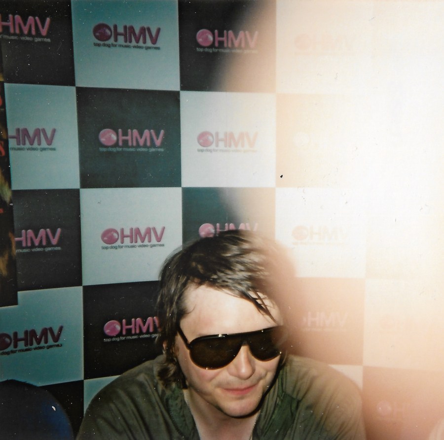 What happened next was the Manics appearing at the other side of the shop and sitting down at a desk. As I was fairly close to the stage I was now miles away from them, and I figured it would be ages before I got my chance to meet them, but I was wrong!