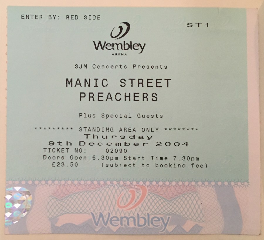 ‘Well, never thought I’d see the day where I’d sit casually in a pub with my mates for a couple of drinks before strolling off to a Manics gig, rather than rushing insanely to the venue to get my spot down the front. But, you know, it was a Thursday! Cadogan night! So I had a couple of JD & cokes and hence was completely dying for the loo by the time I got to Wembley.’