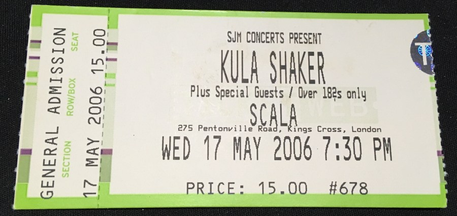 It would be a whole decade before I would see Kula Shaker again, for two marvelous gigs in 2016 – and rest assured, diligent reader, that I have full and detailed accounts in my diary to go on for those! But despite my scanty memories, I feel a little bit proud of myself for venturing out to see Kula Shaker this Spring evening in 2006. Because regardless of my troubled mind and dwindling obsession for music in 2006, I still made the effort to go out and see one of the greatest rock bands of the era.