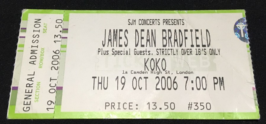 In 2006 the Manics were taking a bit of a break from band activities so that James and Nicky could release solo albums. James’s “The Great Western” had been released in July, and though I’d enjoyed it a lot, it did lack a little bit of the excitement that comes with a new Manics album. Still, it was good enough to entice me to go and see him at this solo show at KoKo.