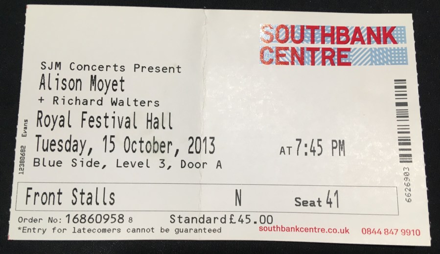 ‘To the Royal Festival Hall for utterly brill Alison Moyet! She did “Love Resurrection”! and also POGELS-worthy “Changeling”! Home and collapsed sometime after eleven. ‘