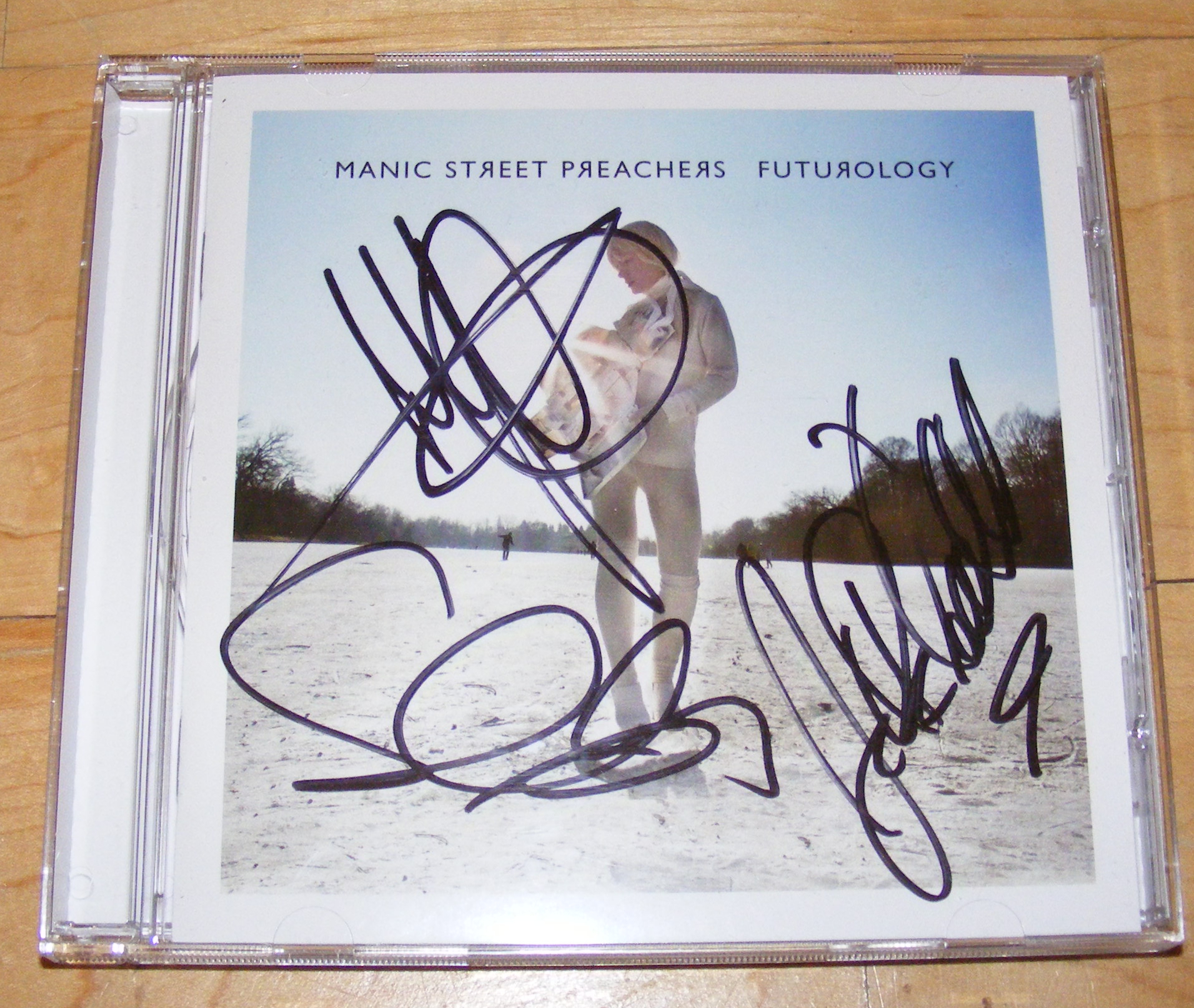 Me: (arrives at signing desk) Hello! Manics: (staring to the side, engrossed in a conversation) Sean: (signs CD booklet, passes to James without looking at me) James: (doesn't notice, carries on chat, then realising it's there, signs) (lull in Manics conversation) Me: That was a brilliant show guys! James: (still staring at whoever he's chatting to) Thank you very much (passes booklet to Nicky) Nicky: (engrossed in conversation, signs CD booklet without looking at it, hands it to me without looking at me) Me: Thank you! Nicky: (still chatting away)
