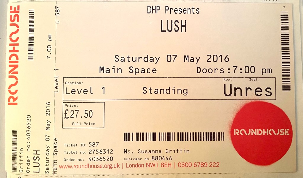 I had therefore never expected to get the chance to see them live, but in 2016, the stars seemed to align to allow me to witness almost every band I’d ever loved, including Lush. So out I went this spring evening to commence my new gigging life. Surprisingly. despite my prolific gig habit of the late 90’s, I’d never found myself at the Roundhouse before. It turned out that my first moments in the venue were not hugely auspicious ones. From my diary: