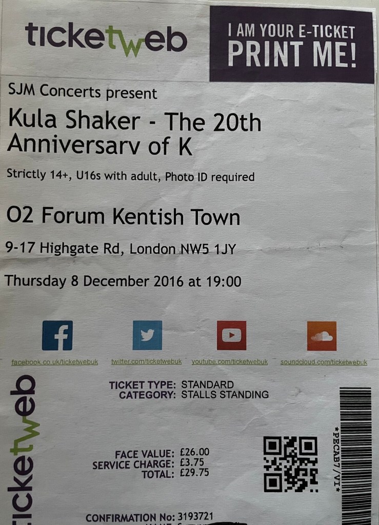 Less than an hour and a half later, I stepped out of the viva room having passed my PhD, with only a few months’ more work to do on some minor thesis corrections. It was time to celebrate, and how more brilliantly could I do so than by spending an evening with Kula Shaker, performing their classic debut “K” in full?