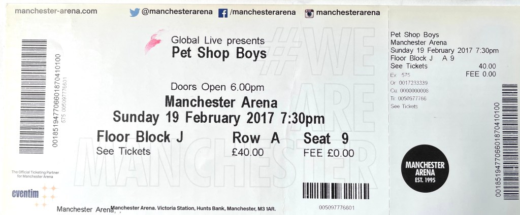 It was February 2017 and I was having an unusually busy weekend. I’d hurtled north to Liverpool on the Saturday to celebrate the 20th anniversary of Mansun’s incredible debut album, and on Sunday it was time for a jaunt to Manchester to see the Pet Shop Boys on their “Super” tour. It’s safe to say that it was a much more active weekend than my nearly 42 year old self was used to, and I found myself very weary by the time I crashed into my Manchester hotel to prepare for the night’s gig. From my diary: