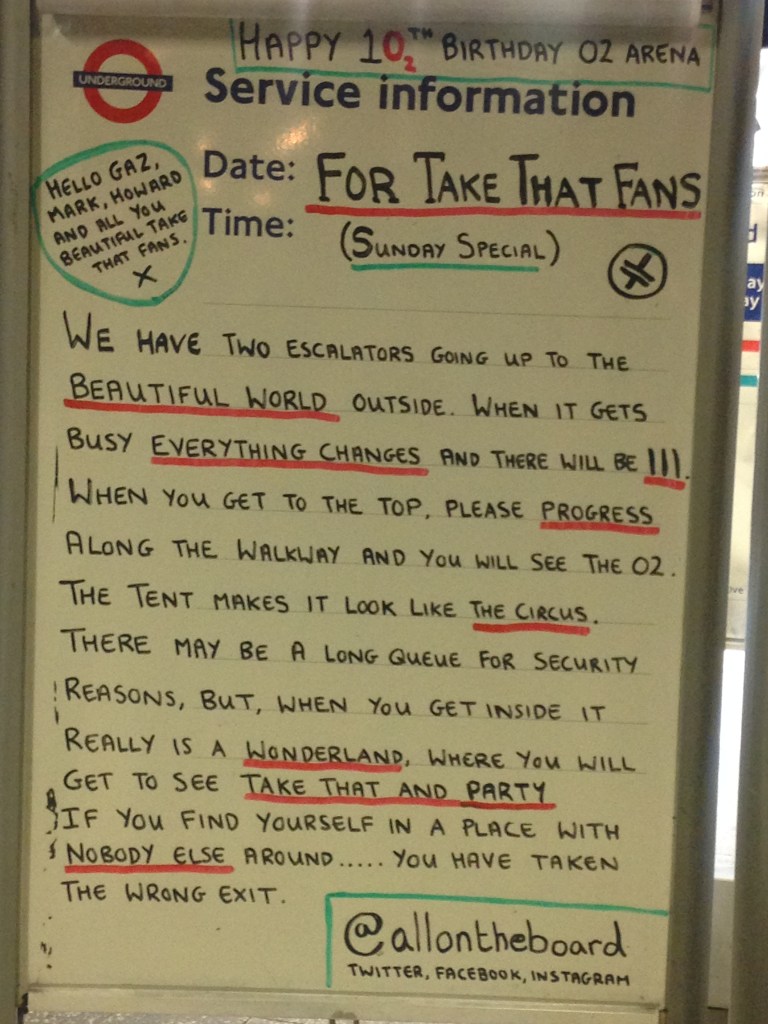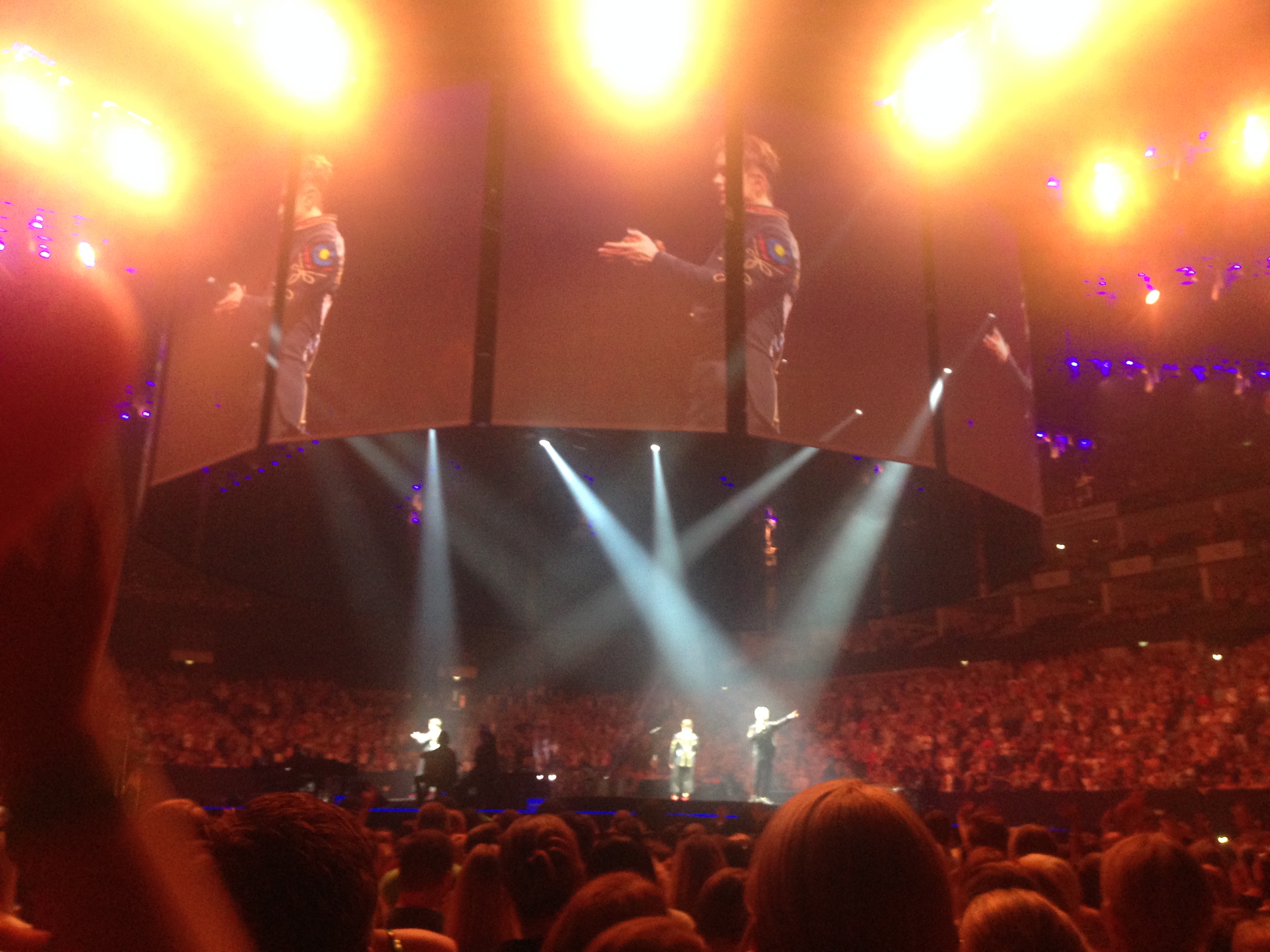 “Wonderland” was a new kind of tour for the boys, performed in the round in the centre of the O2 arena. I’d watched many bits of footage from previous shows on YouTube already, and it was strange and wonderful it was to actually, finally be there. Given the unusual setup of the show, on arriving at the arena, some strategic planning was in order.