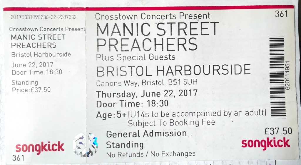 My 2017 Summer of Gigs continued with a jaunt to Bristol to see the Manics. This was my first time seeing the boys since my love for the band had been rekindled at the Royal Albert Hall the year before, and I was excited to see them again. However, things did not go quite as planned. In an epic display of stupidity upon arriving in Bristol, I misread the name of my hotel and trekked all the way across the city, only to find I was actually staying right next to the station. At least I can say I got my steps in that day, but maybe this misadventure marred my ability to enjoy the gig fully. From my diary:
