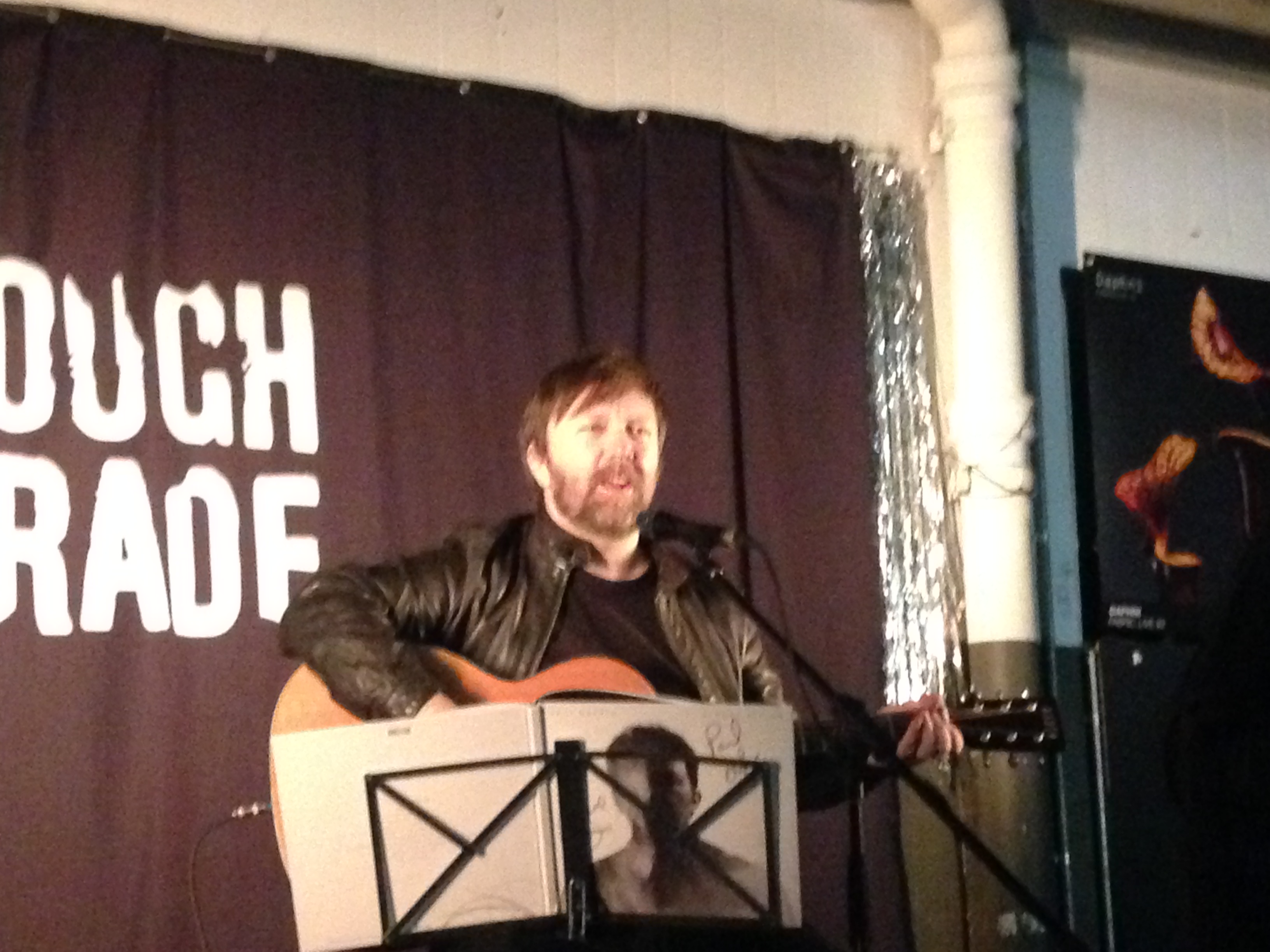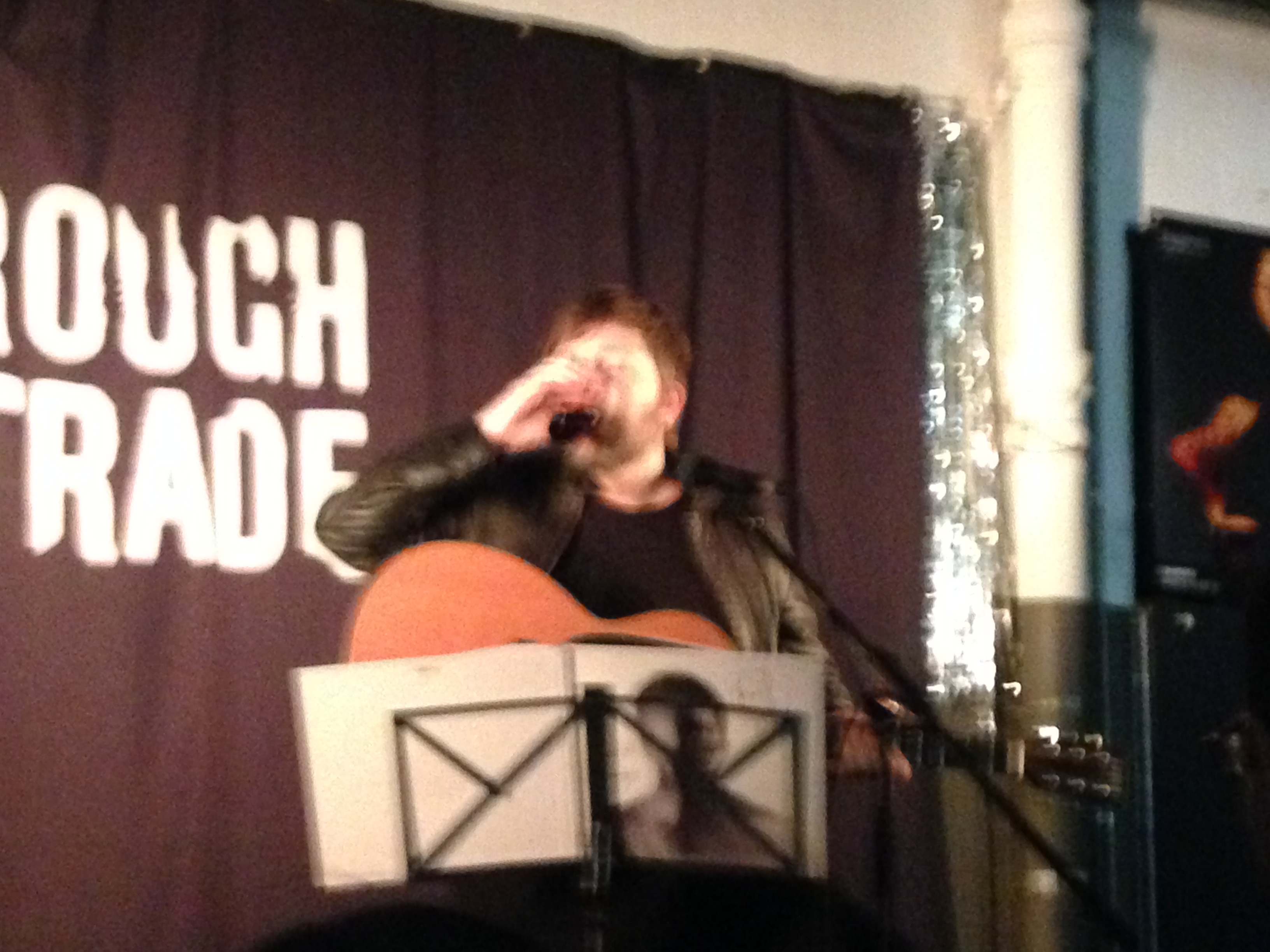 ‘Where do I begin? After two and a bit glasses of wine I was very much Ready and as I made my way to Aldgate East with “Spooky Action” on my headphones it felt pretty untouchably epic. Went the wrong way twice but eventually found Commercial Road and tripped down it towards the dingey side streets where Rough Trade resides. Went in to get my CD and wristband, and I could hear a bit of guitar strummage coming from the stage area. I nipped to the loo as the wine was taking effect, and this is how it eventuated that my first experience of live Draper vocals in 16 ½ years occurred in the grimy graffiti-strewn loo of Rough Trade as Paul soundchecked “Friends Make The Worst Enemies”. Ha!’