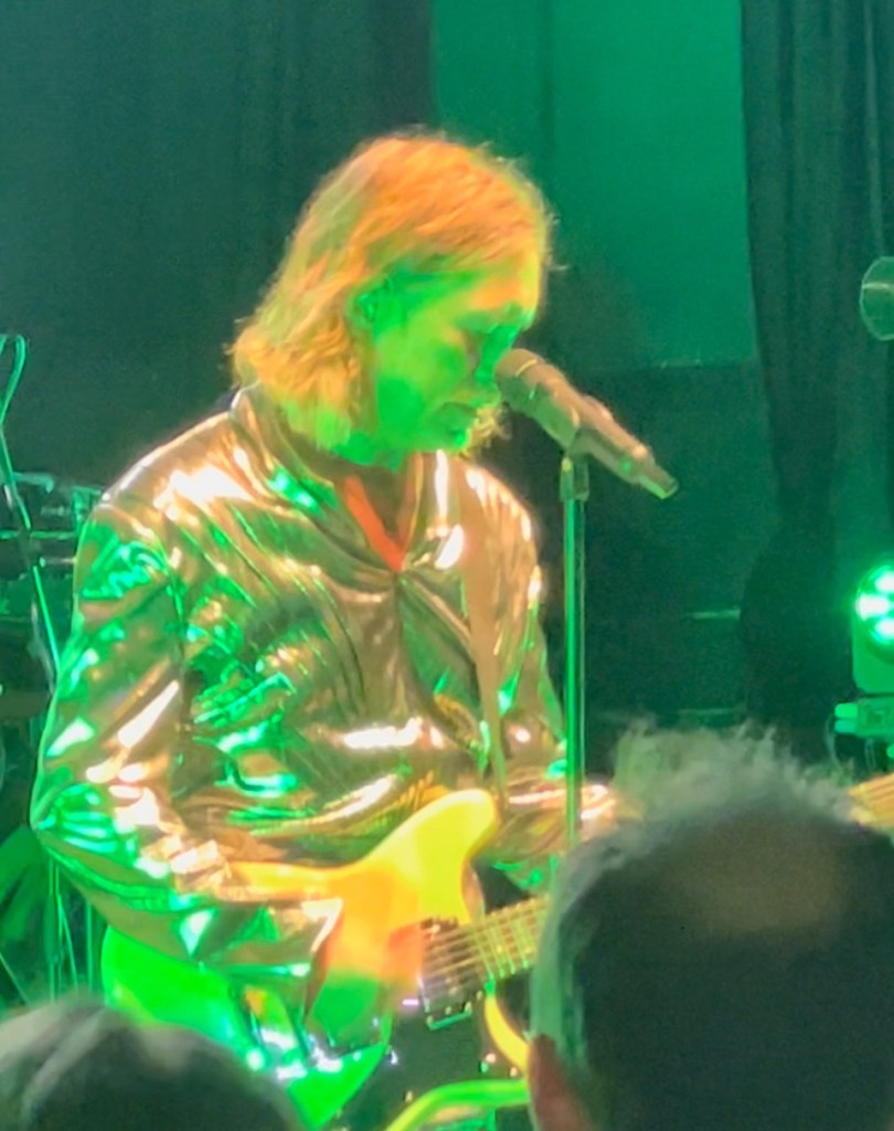 This gig featured the exact same setlist as the Ritz show, and I believe the other two shows on the tour as well. Outfit wise, he appeared at first in a simple get up with jeans and a camel jacket, before dazzling us all in a spacy silver get-up for the middle section, and then taking to the angelic white suit again for the encore, at first covering it with a black poncho.