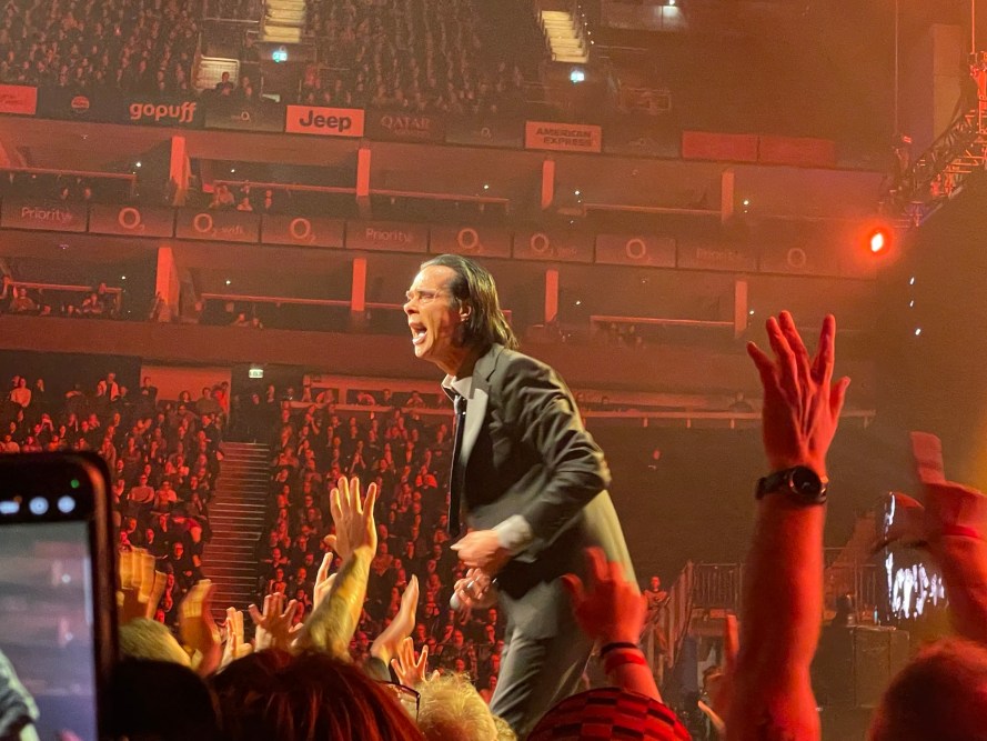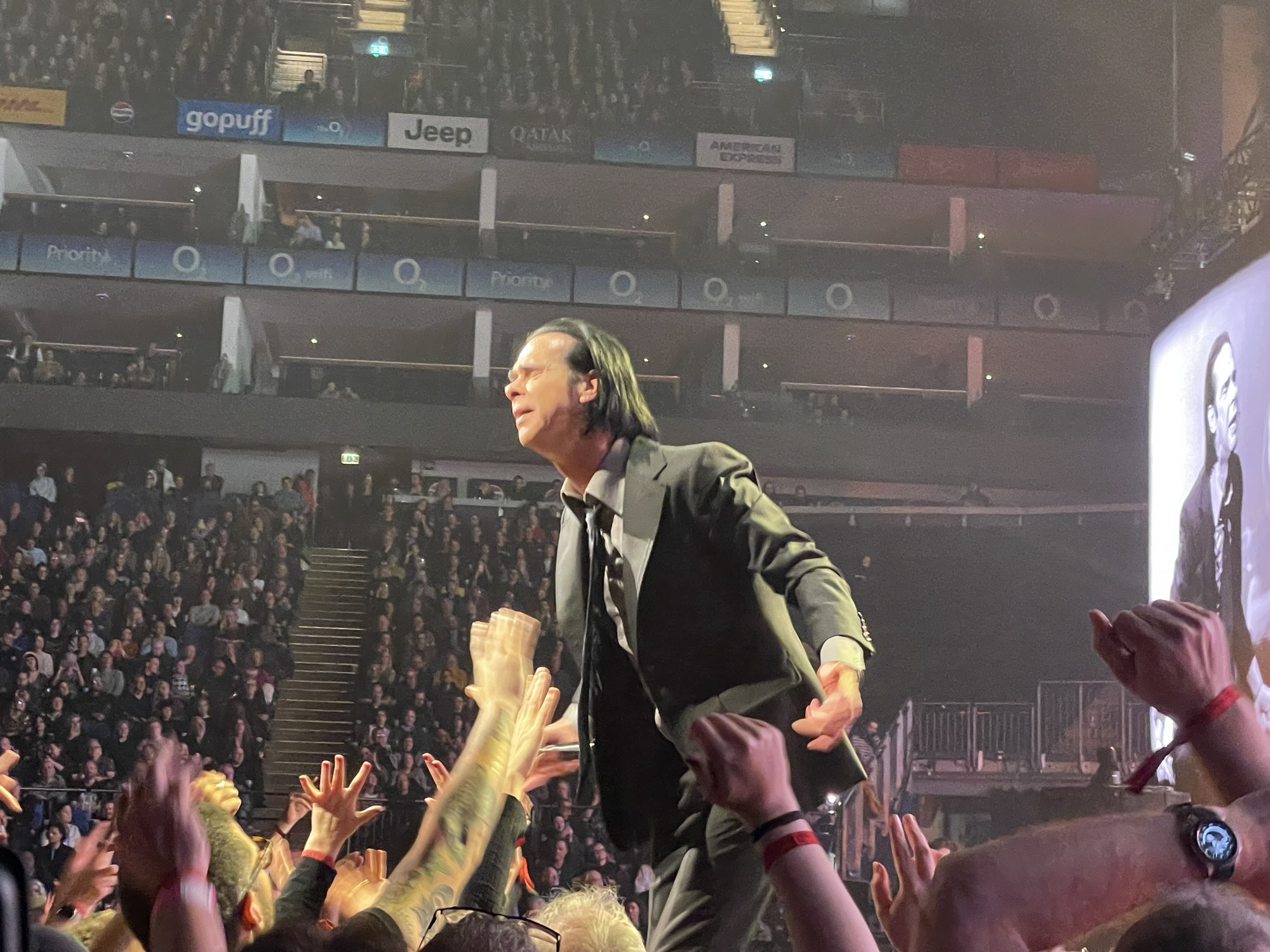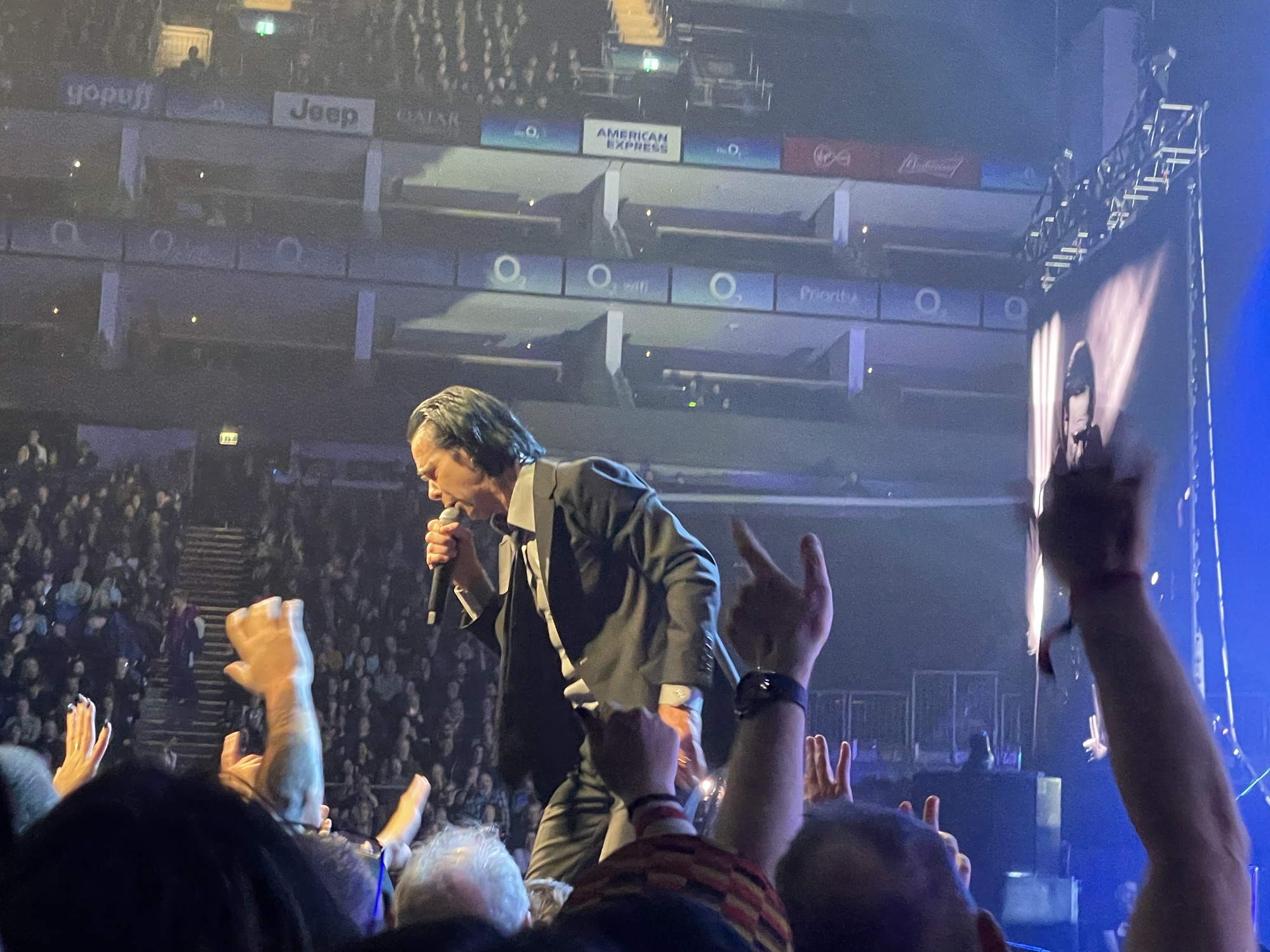 So it was with both excitement and trepidation that I made my way to the O2 to see Nick Cave for the 10th time. From my diary: ‘Once in I sidled up to the front, about three rows back to the far right of the stage, very near where I was for Liam Gallagher in ’21 actually. I put my earplugs in and hoped I was not taking too much of a risk by being so close to the front.’