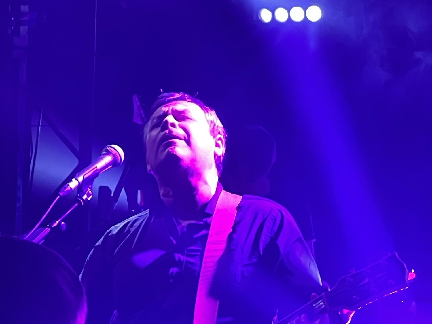 At the time of these gigs, “Critical Thinking” was still two weeks from being released, having been delayed from its original release date of the 31st January. I had wondered whether the band might do a complete run through of the new album, giving us all a sneak preview, but when the first gig commenced at 5.30pm, we were launched back into the 90s with “Enola Alone”. Soon however we were into the new songs, and of these, “Decline and Fall ” came across the best. I described it in my diary as ‘a jolt to the soul, insanely infectious’. The song I’d most been looking forward to was the aforementioned debut for Nicky as a single lead vocal, the heartwarming and uplifting “Hiding In Plain Sight”, but it came across a little timid and undercooked on this night, with Nicky ruefully complaining that he would have to sing it twice in one evening. We also had the live debut of “People Ruin Paintings”, which had been released a few weeks earlier, a pleasant, jauntily melodic tune.