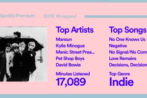 I love indie music and I love pop music. Scruffy Storms is a name which came from a Mansun song (“No One Knows Us”) and a Take That song (“New Day”). My Spotify summary for 2017 says it all really.