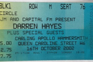 All the gigs of my life: Gig 60 – Darren Hayes, Wednesday, October 16, 2002, Hammersmith Apollo