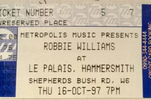 Robbie Williams live, in a 2500 capacity club, for less than fifteen quid. Truly, 1997 was a different planet.